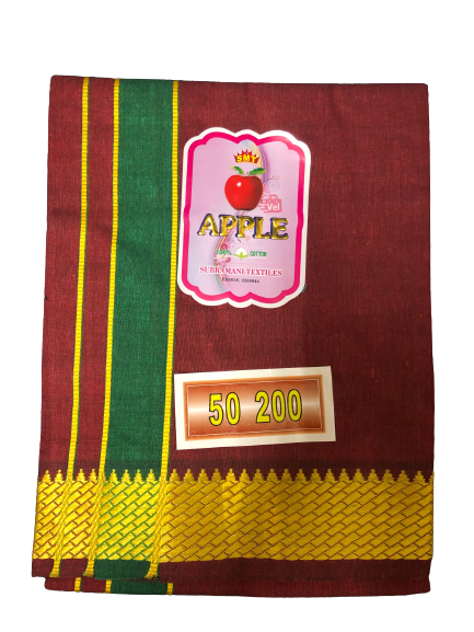 Apple Cotton Dhotie (Veshti) Maroon 2m