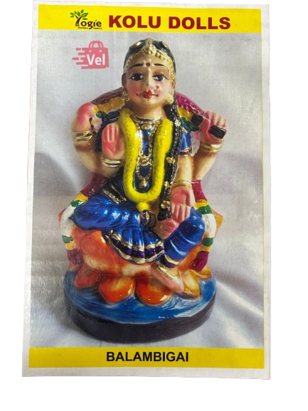 Balambigai, also known as Bala Tripura Sundari, is a Hindu goddess worshipped during the Navaratri festival, particularly in the Golu doll display. She is depicted as a powerful, yet wise and courageous, nine-year-old girl, seen as a manifestation of divine feminine energy and an embodiment of beauty, strength, and protection. In the Navaratri context, she symbolizes self-realization and the highest form of Shakti