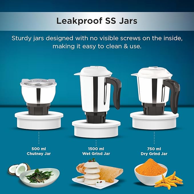| Included Components | 1 Main Unit, 1 User Manual & Warranty Card, 3 Stainless Steel Jars |