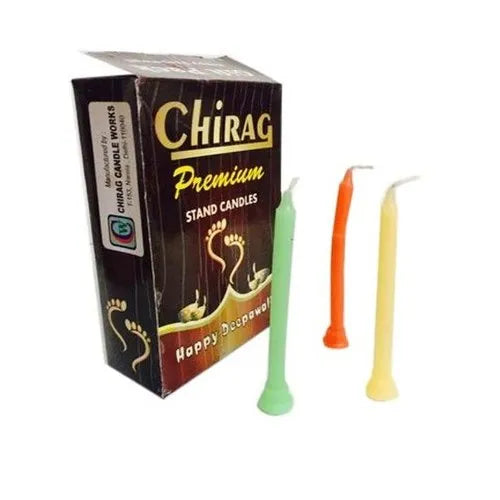 "Chirag Premium Stand Candles" likely refers to candle holders from the brand Chirag Handicrafts, which are made from durable iron with a powder-coated finish and feature a unique matka design.