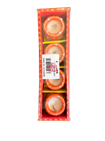 Colour Chutti (Diya) 4Pcs Pot Shape With Wax Orange