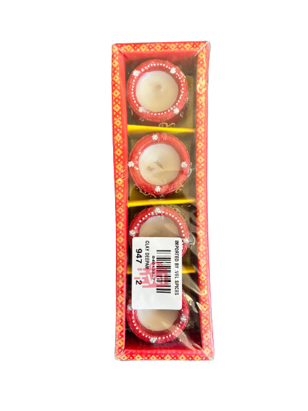 Colour Chutti (Diya) 4Pcs Pot Shape With Wax Red