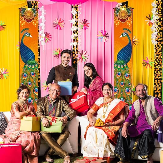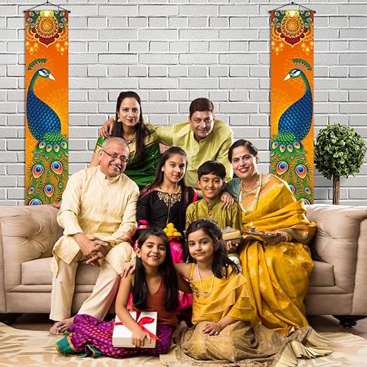 Each set includes 2 banners (12x71 inch each), pre-strung and easy to hang on your front door, porch, windows, walls, garage, or even as a photo booth backdrop. The bold orange background and detailed peacock motifs add a traditional yet eye-catching touch to your décor, creating a warm and welcoming atmosphere for family, friends, and guests.