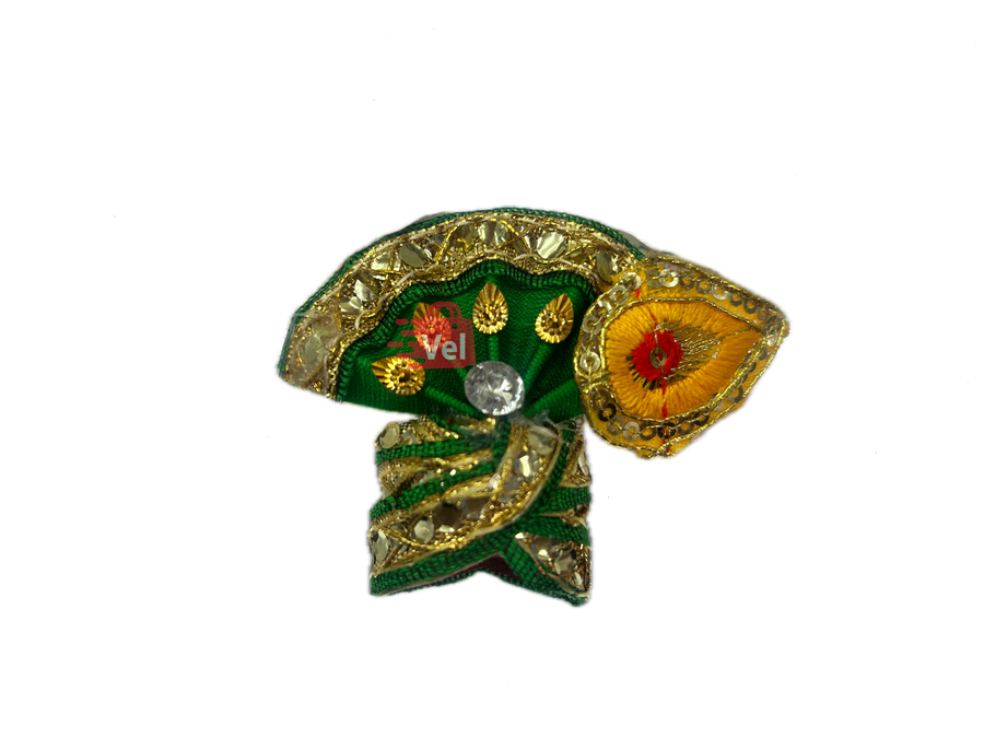A Krishna hat, also known as a Mukut or Pagdi, is a decorative headwear often included in Krishna Janmashtami celebrations and Pooja rituals.