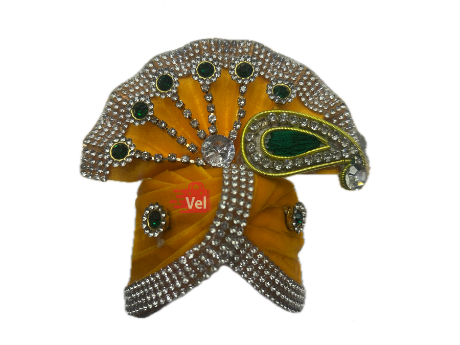 A Krishna hat, also known as a Mukut or Pagdi, is a decorative headwear often included in Krishna Janmashtami celebrations and Pooja rituals.
