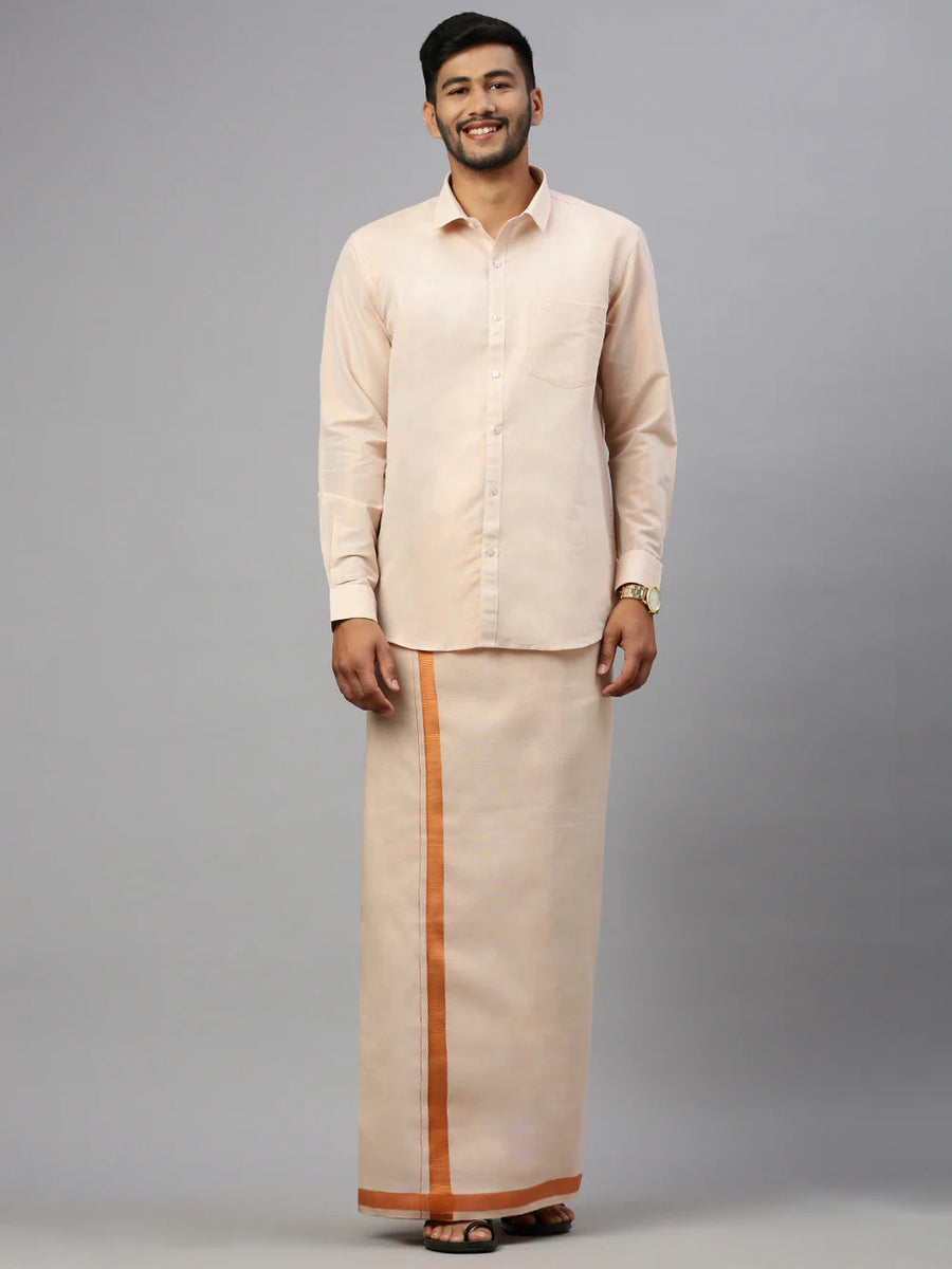 Ramraj Dhoti & Full Sleeves Shirt Set Copper jari
