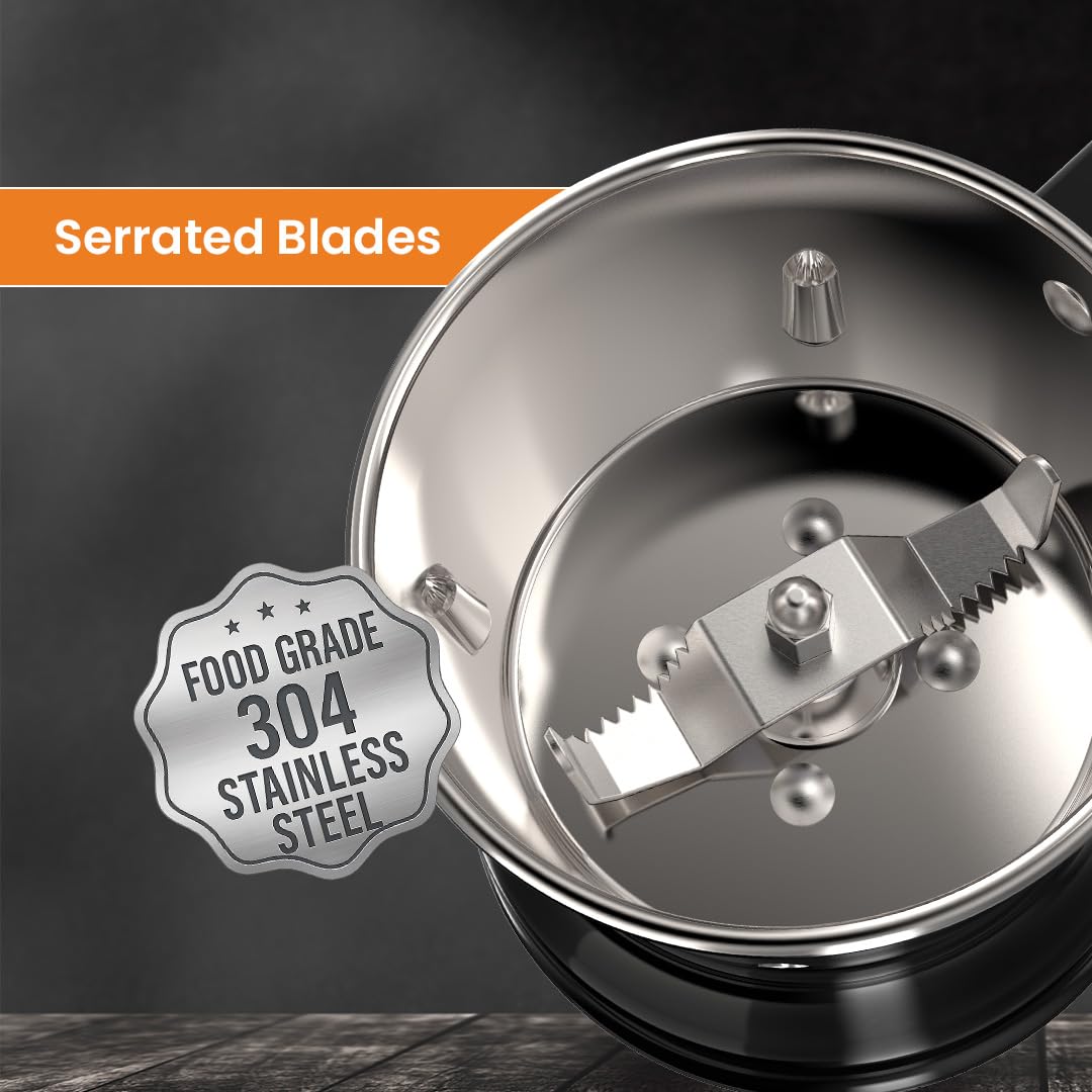 Food grade serrated blades – Precision blades for consistent smooth results, even with tough ingredients.