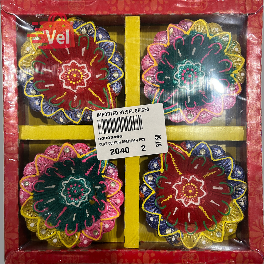 Diya Set of 4 – Dual-Tone Decorative Diyas with Flower Pattern | Pink-Yellow & Yellow-Blue Mix for Diwali Pooja, Aarti & Home Decor