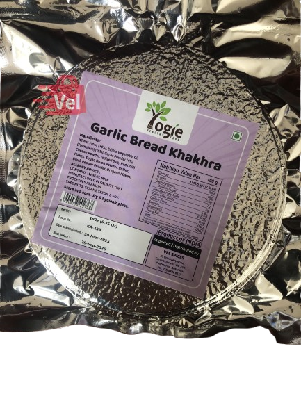 Garlic bread khakhra is a snack that combines the flavor of garlic bread with the crispy texture of a khakhra, a thin, flatbread made from wheat flour.