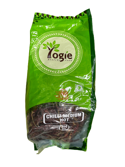 Yogie Medium Hot Chilli With Stem 500G