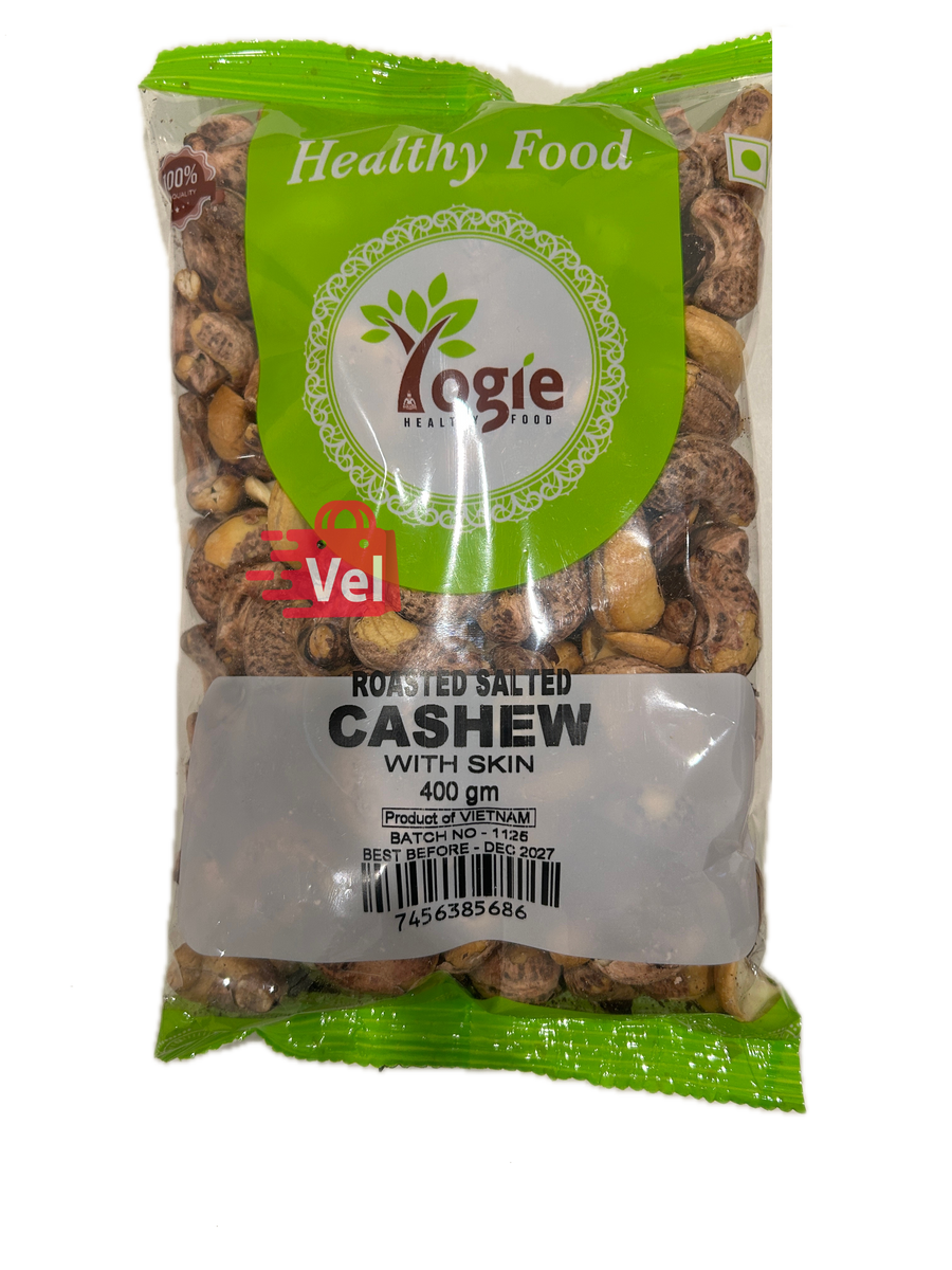 Yogie Roasted Salted Cashew With Skin 400G is a snack of premium, lightly salted, dry-roasted cashews with their skins on.